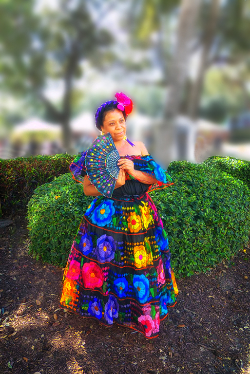 Bev, she is a most colorful character. I'm glad you included the original so we can see what you were up against. However, I think blackening it out might be too extreme. I tried to blur the area and then did a dodge and burn to darken it. I would not change a thing you did to the lady. I have attached my tweaks. . . |