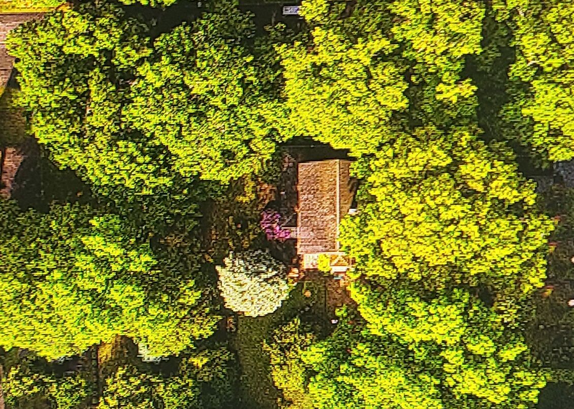 Lisa, I like these kind of shots it gives you a different look at your neighbohood. The colors and the light are very nice. My only thoughts are dropping down and closing in on your freinds house. Maybe just the trees and there brown roof in the frame it might be interesting ? Nice job. |