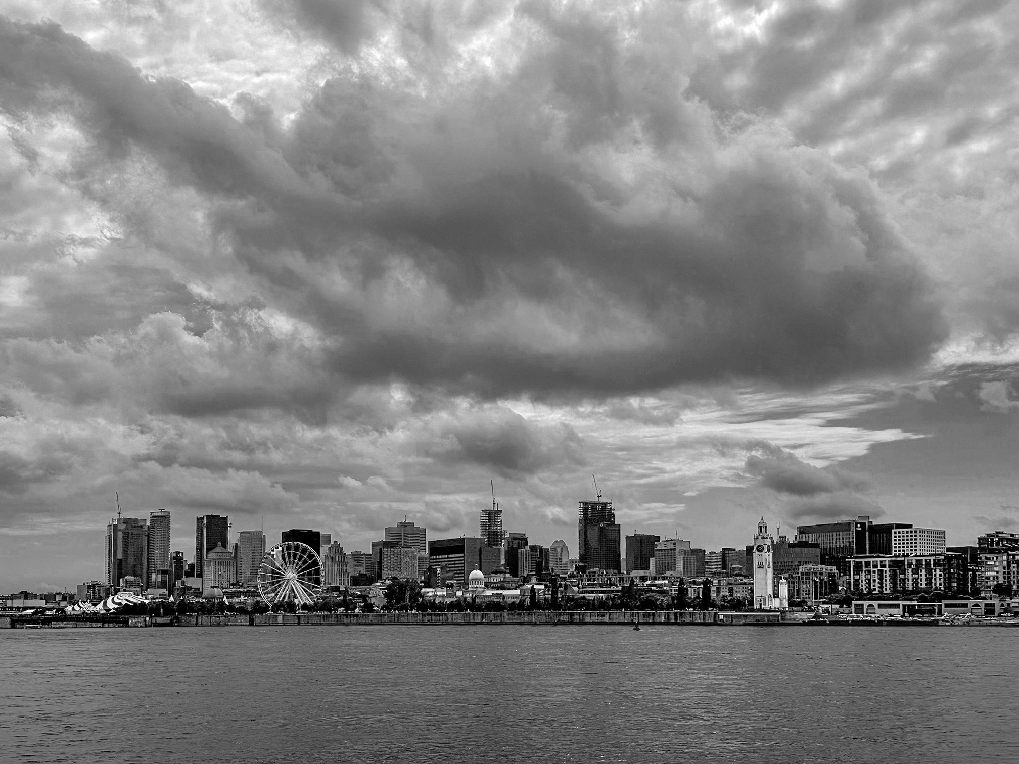 I re-edited you photo. I first made a new color version which I then converted to Black and White. I thought the buildings were too dark and I noticed that the buildings near the edges looked like they were leaning in. So I adjusted the levels, adjusted the geometry and added a worming filter 81 with a 28% density to make the color version. I then converted it to B/W and adjusted the luminosity of the colors to bring out detail. Here are both my color and B/W versions. |