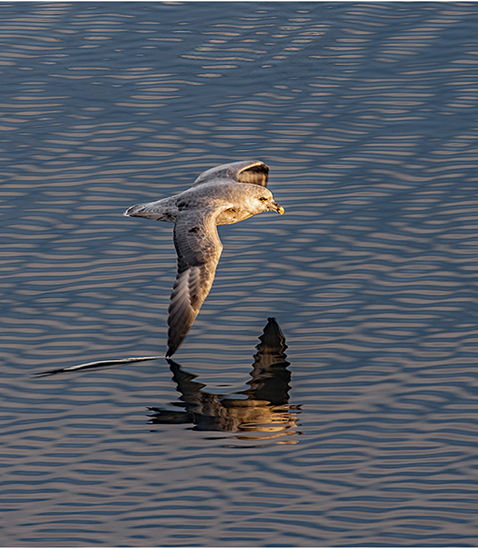 I really like the pattern in the water! Nice capture with the wing just dragging the edge. Thought there was a bit too much water so I tried a vertical crop and de-hazed the image which enhanced the bird. What do you think? |