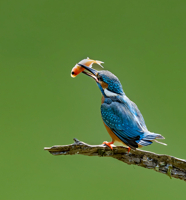 Beautiful color to this Kingfisher. I wish he was facing us more but I know there are things we cannot control. I cropped closer so we could enjoy the amazing colors and detailing of his feathering, also darken hot spot on top of head and on fish. What do you think? |