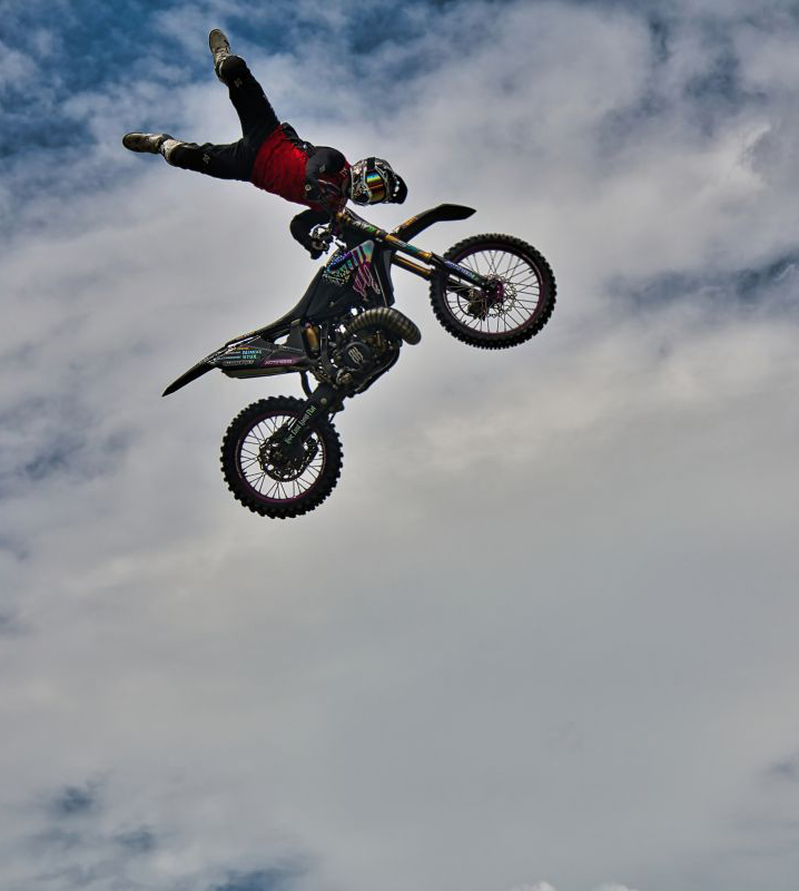 Definitely caught the height of action with the rider being extended off the motorcycle. Extremely hard to catch the action and have everything in focus and have no distractions from the show. Job well done. Just tried a vertical crop to see if you get the same effect showing the height and action. |