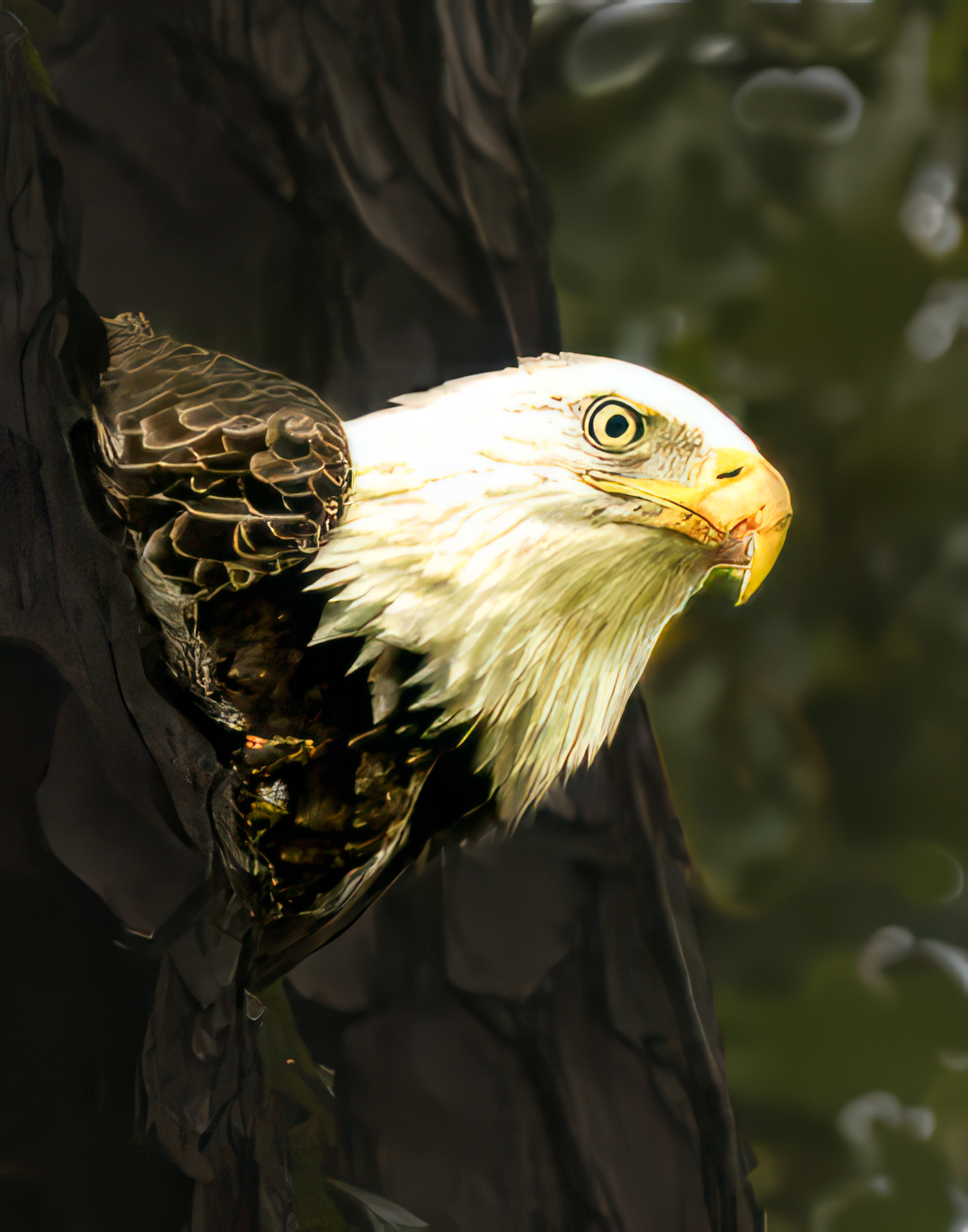We have Bald Eagles all over in Central Florida, but it is hard to get close to them even with a large telephoto. I thought that since a lot of the bird was blocked by the branch, you might just focus on the head. |