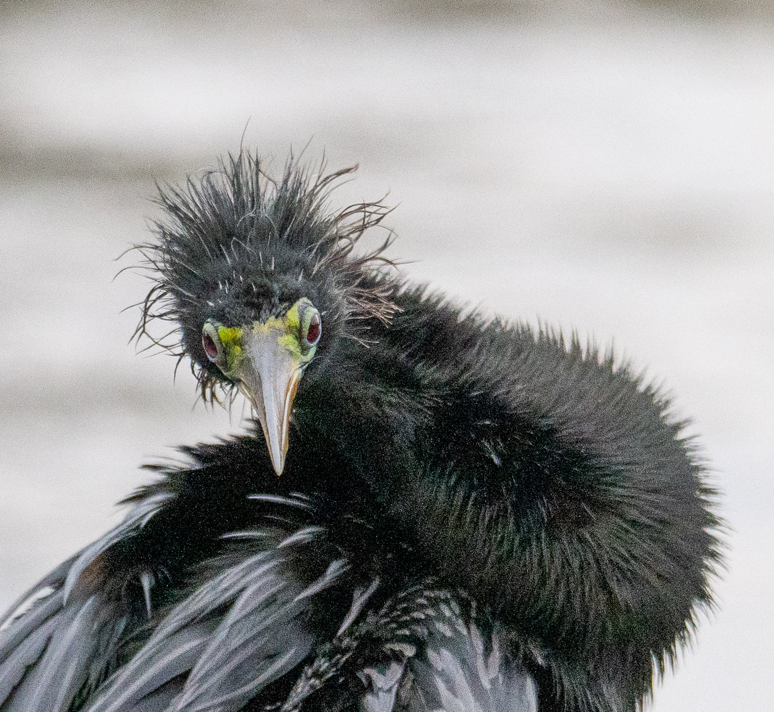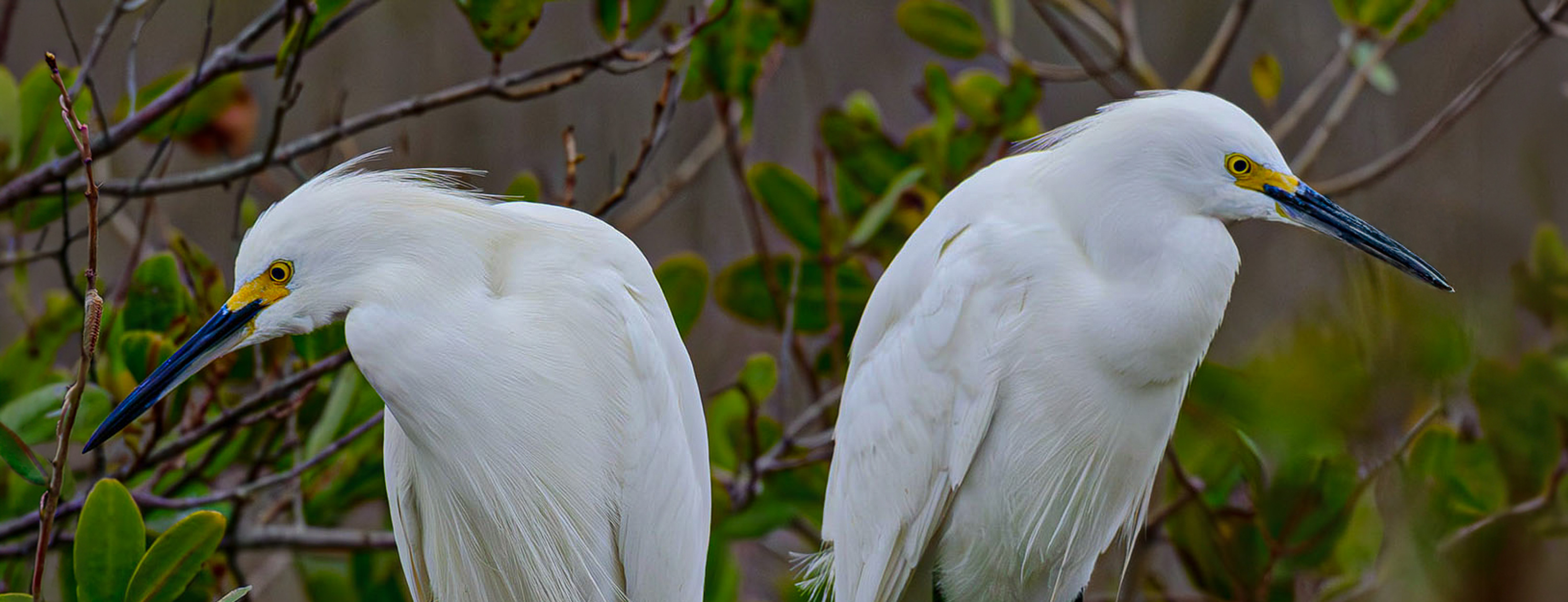 Craig, nice photograph of the Herons ignoring each other. Since this is not a "nature" photo I took the liberty to remove the foliage in front of the right bird's beak. I recropped to remove the bushes on the bottom and added a little space in front of each bird. Also, darkened the background a little. Why do these birds perch so far into the bushes when we try to photograph them? |