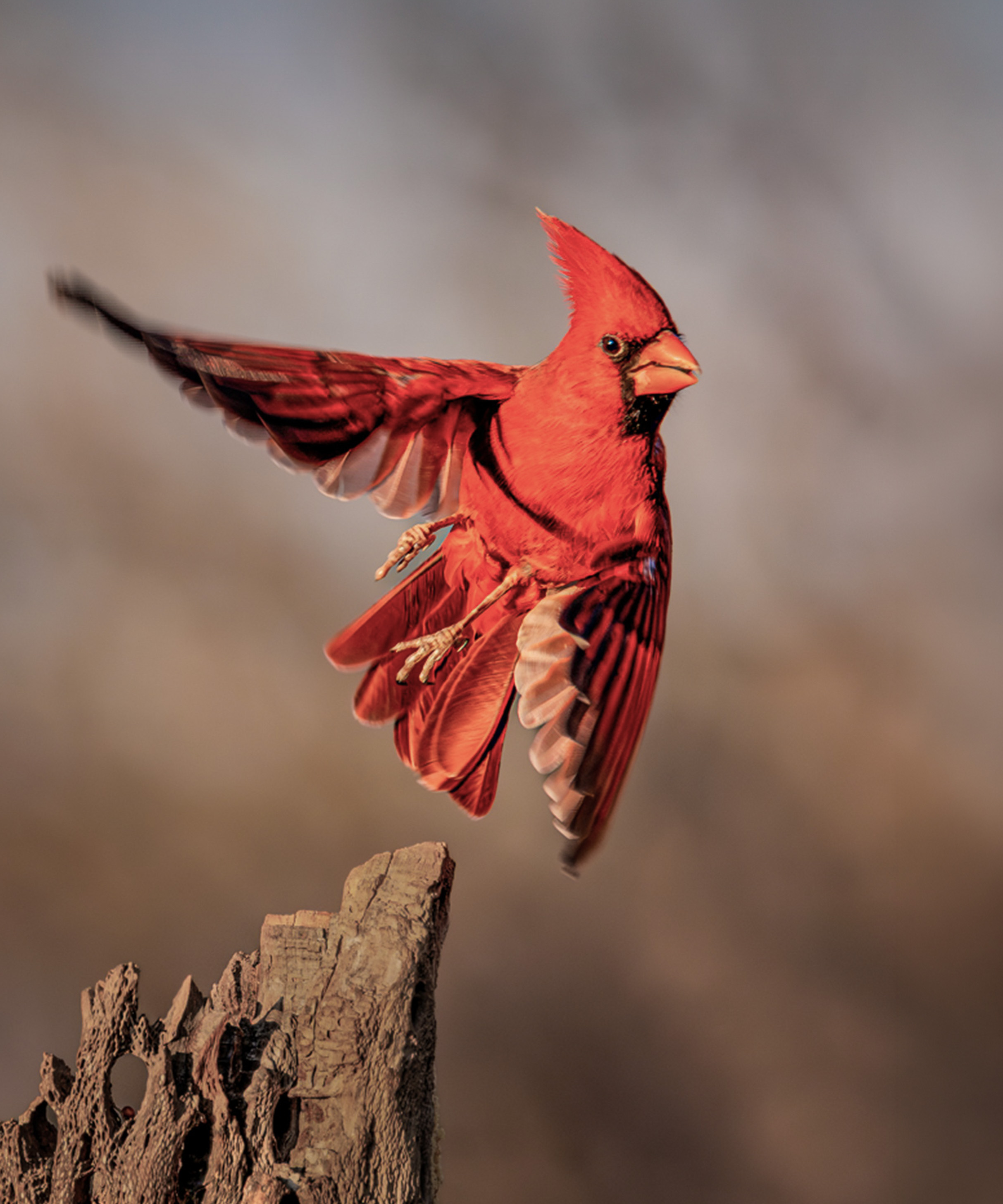 Butch, I really appreciate you bringing a "discussion image" for us to think about. I am also doing my best to get a new perspective on my wildlife photography. I think your approach has lots of potential. If you had been able to shoot off a dozen or so of these shots, I think you would have gotten the wing and foot position (right foot folded) in a better perspective and sense of motion with the blured wing tips. I liked the cactus, I think it gave a focused visual base for the bird to take off from. In my image, I decreased the saturation and increased the vibrance to try and give some more texture to the breast area (maybe only if any a little change). I also added a little space top and right for the bird to fly into. I look forwad to more comments on this image! |