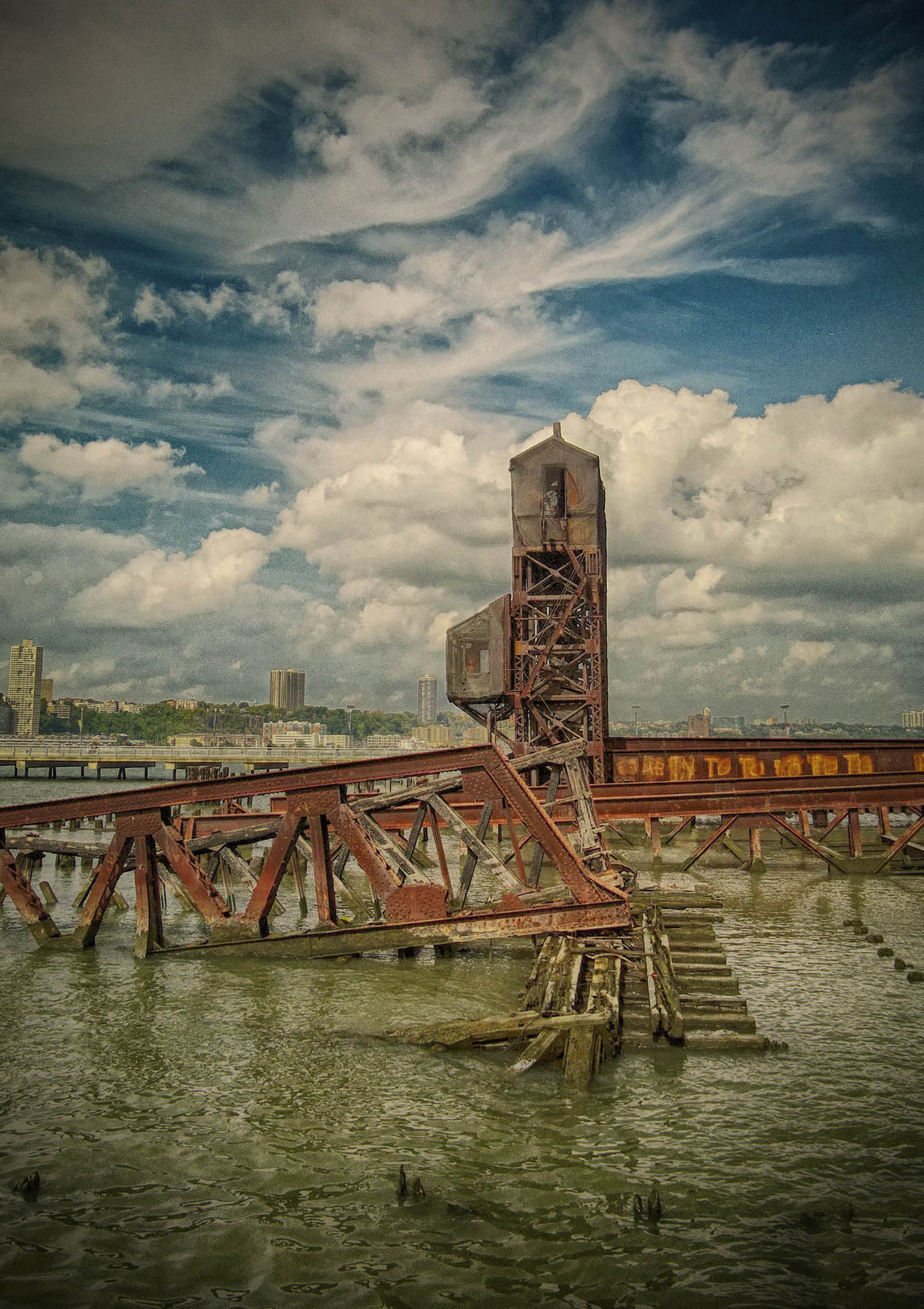 I like the B&W tonal quality and this seems like a fun place to explore, but it does seem to be somewhat busy. What if it was cropped from the right, stopping before the ferris wheel as it puts the wheel more to the 'right' making it off centered. This would result an almost square format...just a thought. The sky texture works well here. |