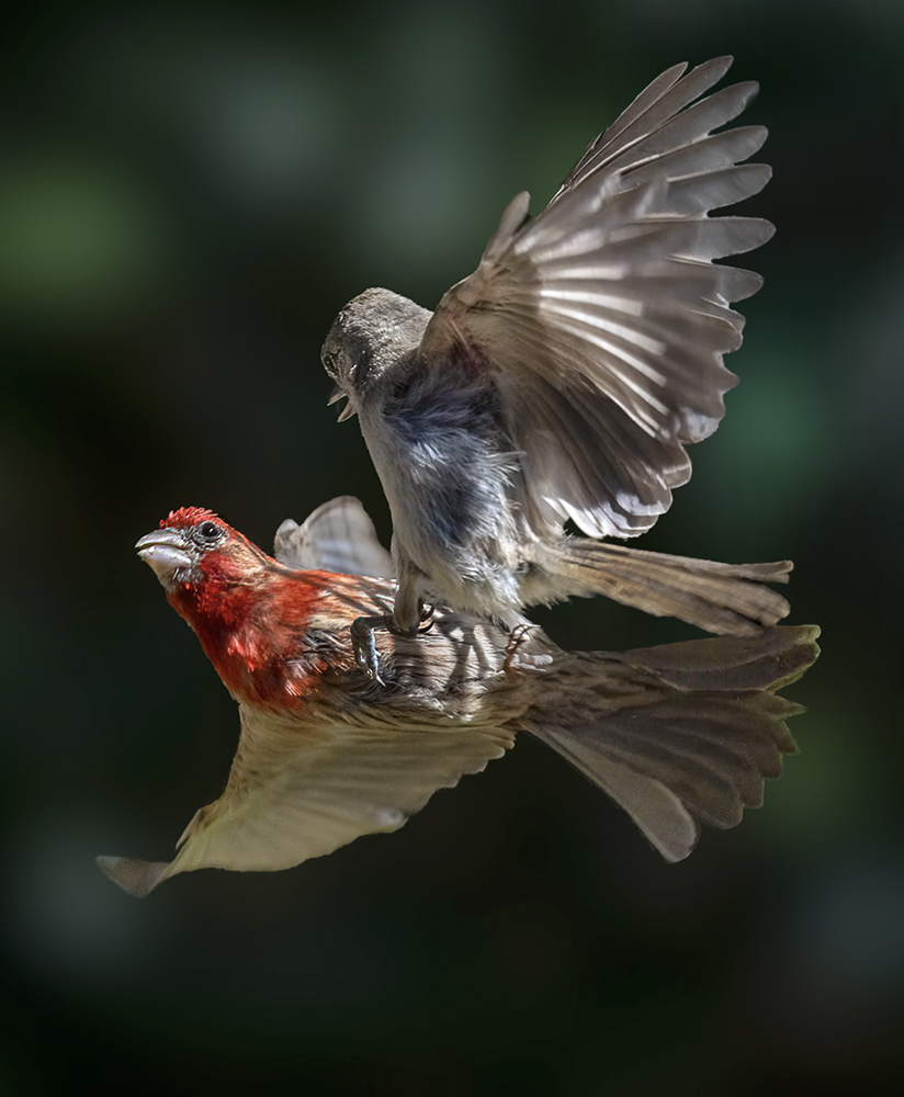 Great interaction but I too would rather get rid of the distraction and enter the image as not-Nature, as it were. As a result I cleaned up the background and added just a bit of sharpening to the eyes and 'claws' to draw attention even more to the violence here. Fantastic capture though! :) |