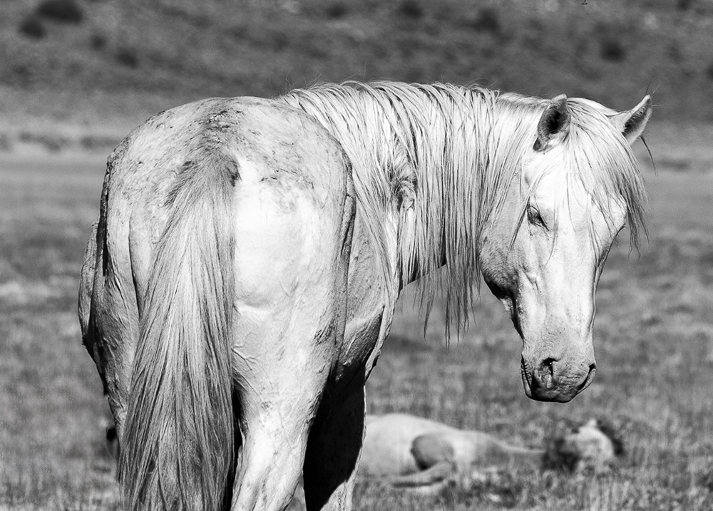 OK - I 'read' this image very differently. I know nothing about horses. Before reading your notes I 'saw' a very old, careworn, mare with a foal. I once rescued a small dog who was very old and very ill, who still came on heat and could have had, in effect, puppies. If we hadn't found her, this would have happened if Mother Nature had run her course. I saw that old dog reflected in this image. I tidied up the distraction to the left just to leave just the old mare and what I perceived to be her foal. The harshness and cruelty of nature at times. Ok, not quite what the image was - but jut a reaction to it. |