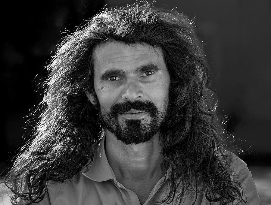 Great image - good interesting subject and well handled exposure. Great monochrome going all the way from black to white. I just tinkered with lightening midtones everywhere except that left hand side, which I actually made a little bit darker. I think this draws the eye more into the face? B |