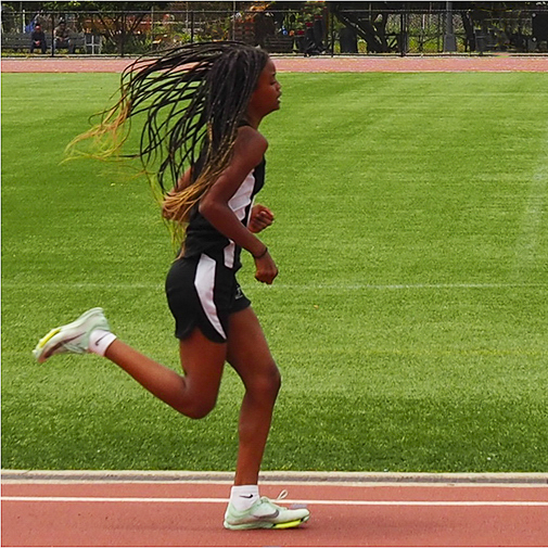 I particularly like the left runner's hair flowing out behind. You could even crop to include just this runner as her stance is more interesting (in my view), which I tried and attach here.