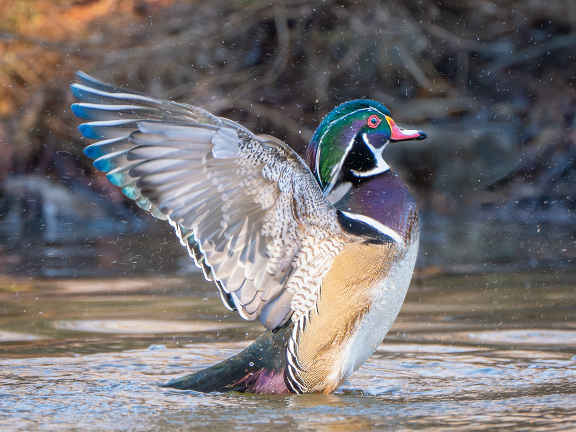 Wood duck and reflection. Sometimes surprising proportions look very artistic to me which is the case here. I might lighten the wood duck just a little to bring out more detail. |