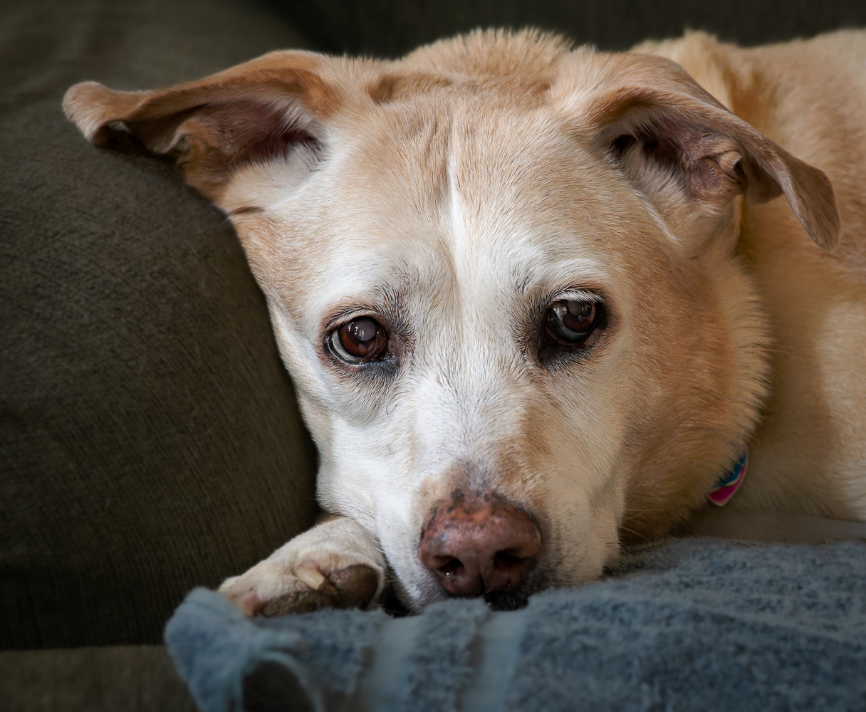Joan, thank you for your kind comments. She's alive and well and is a very happy dog. I caught this moment when I woke her up from a nap. She's almost 12, so she's slowed down a bit. Our other dog is 9 and they are inseparable. I've attach another image of her in a happier moment.