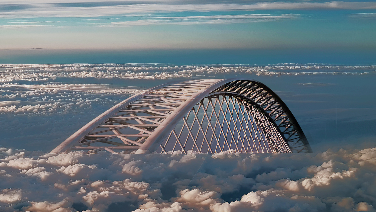 That's one tall bridge! Fun idea. I cropped the sky to draw more attention to the bridge and added some warmth to the highlights on the left side. (Not a great processing job, but it gives you an idea of what I was thinking.) |
