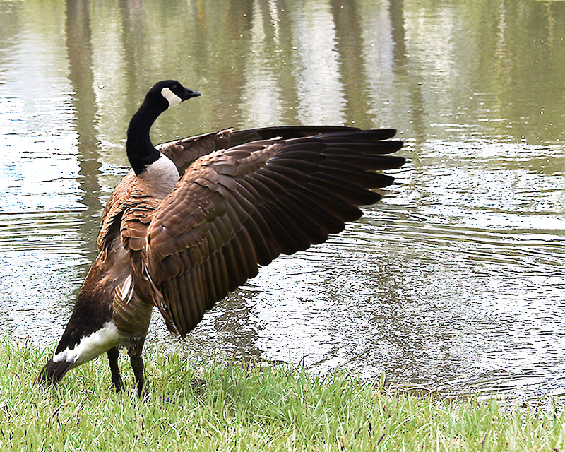 Love the pose. I did a quick edit to brighten the background. Not sure I like it better, but the goose does pop more. |