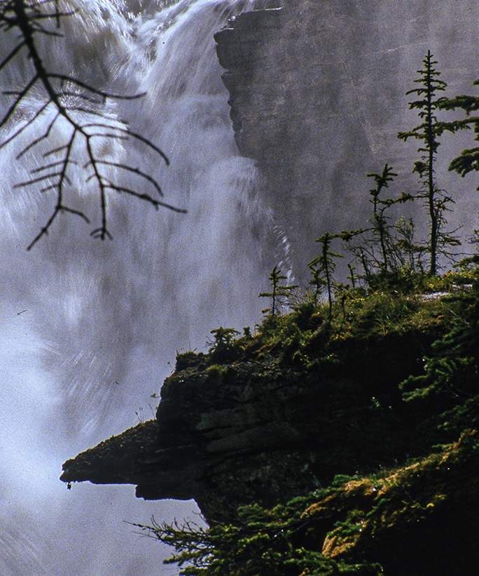 Carole, this photo is just filled with leading lines! The branch at the upper left leads me to and down that V of the confluence of water, which then points the way down to that wonderfully overgrown outcropping of rock. The shape of the rock reminds me of a bird's head, with the beak pointing to the left. Then the trees on the top of the rock take me back to the water. The beak is so striking that iI wondered if it would be an interesting photo on its own. I tried cropping the photo into two different versions, one that emphasized the waterfall at the top and that cropped out the area under point of the beak, and a second that cropped out the water at the top so that the waterfall leads down to the rock and it becomes more of the focus. I'm not sure if either version is an improvement over your original, but they do suggest to me that you've got two subjects fighting for attention. |