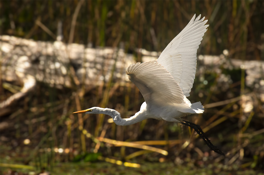 Good timing as you were able to get the heron's wing movement. I would like seeing the bird sharper, perhaps against a blurred background. The log behind the bird's neck is a distraction for me as well, perhaps it can be removed? I wouldn't mind a little more saturation in the blue feathers and more contrast in the image overall.