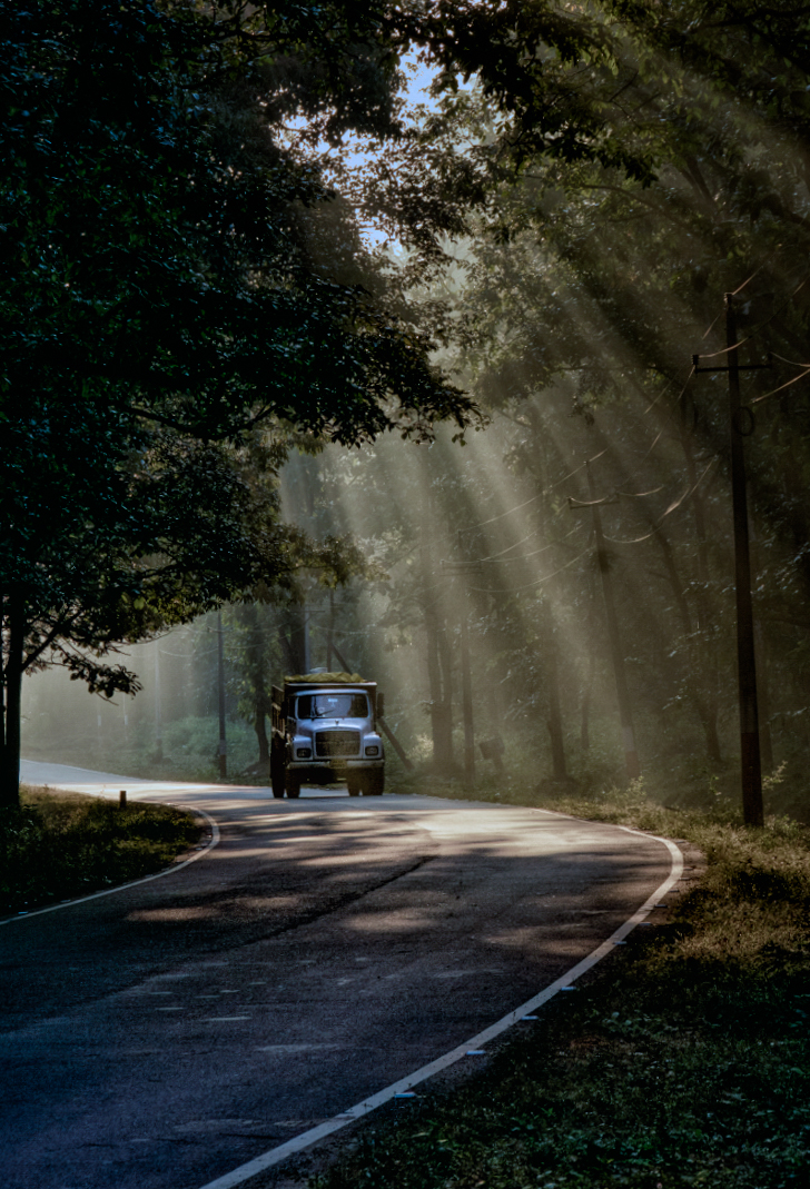 This is a beautifully composed high impact and visually interesting image. Crepuscular rays, a winding road and a vehicle moving directly toward the camera, wow - you couldn't ask for a more interesting scene. I thought the composition was so good that it deserved more natural colors (one man's opinion) so I neutralized the whites. I also thought image might pop a bit more if the vehicle were brightened a touch and if the "god rays" had a bit more emphasis so I lightened the truck and added contrast to the crepuscular rays - so while not better, those are options. Also, I opened the shadows a touch and felt the image was canted ever so slightly to the right so I straightened it just a touch. Since I'm a photo club guy, I will tell you this image scores well in any photo club competition and is one to be proud of. |