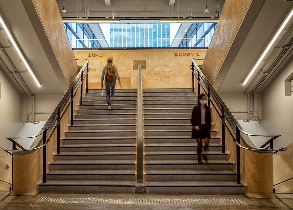 Peter, your choice of 1/5th second was a great idea - I don't know I would have thought of that - good call! You have a GREAT story here with two of people and the "up" and "down" at the top of the stairs - I cropped in to focus solely on the story as I think the third pedestrian is a bit of a distraction to an otherwise fun and interesting story. I also cropped down to eliminate the glaring light at the top center of the frame |