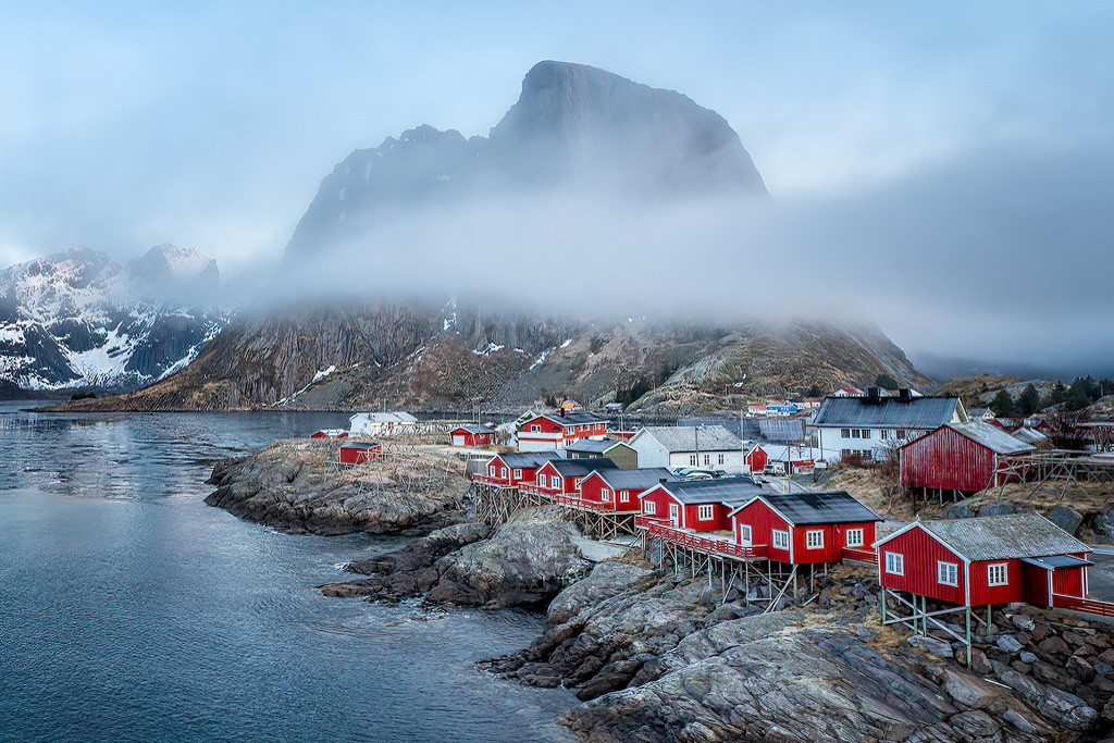 Peter - once again wow, you do find some interesting and fascinating locations - There is so much to like about this image beginning with the mood - that said, sometimes I think less is more and in my VF I focused on what I consider to be the strengths of this image, i.e., the fog, the red buildings and the detail in the rock shoreline. Since PSA doesn't give us many pixels to work with I enhanced the image in LR to get more resolution, added tonal contrast in the Nik Suite and cropped in to focus on what I consider the most interesting aspects of the image - not necessarily better but certainly an option |