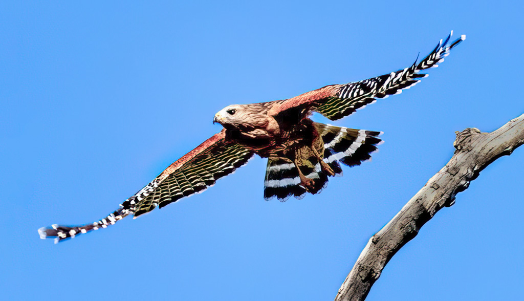 I don't recall ever seeing a Red-shouldered Hawk, so nice capture. The metadata on the image did not come thru so I would be curious to know the focal length and the approximate distance from the maker to the subject.