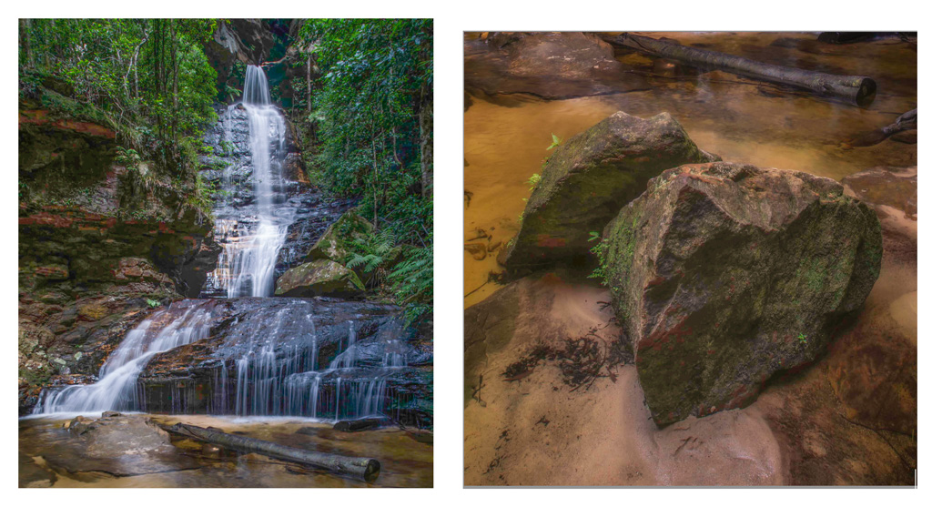 Ian - I think you have two colorful and interesting images here - basically I opened the shadows are reduced highlights and removed a few distractions but in my VF I think you'll see that you have a two-fer - in the original I felt the rocks in the foreground while very interesting detracted from you subject, the Blue Mountains Waterfall - in any event, would love your thoughts |