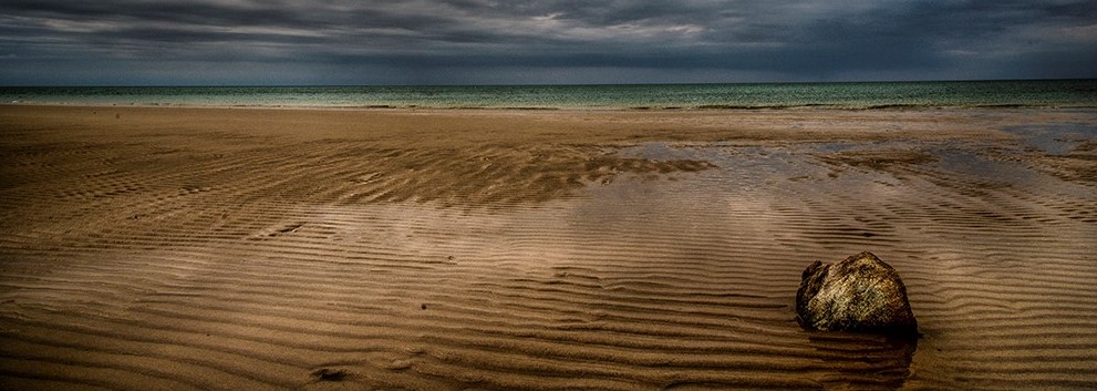 The texture of the sand is impressive, as well as the dark, ominous, clouds. As Bob, I also see the possibility of getting two quite different images from one shot: one as it is now; the other cropping a lot from the top (leaving just a sliver of the clouds and the water) and with some cropping from the left (getting a 2:1 panorama). Just clean the spots and the dark corner and decide which of the two options you prefer (or both). |