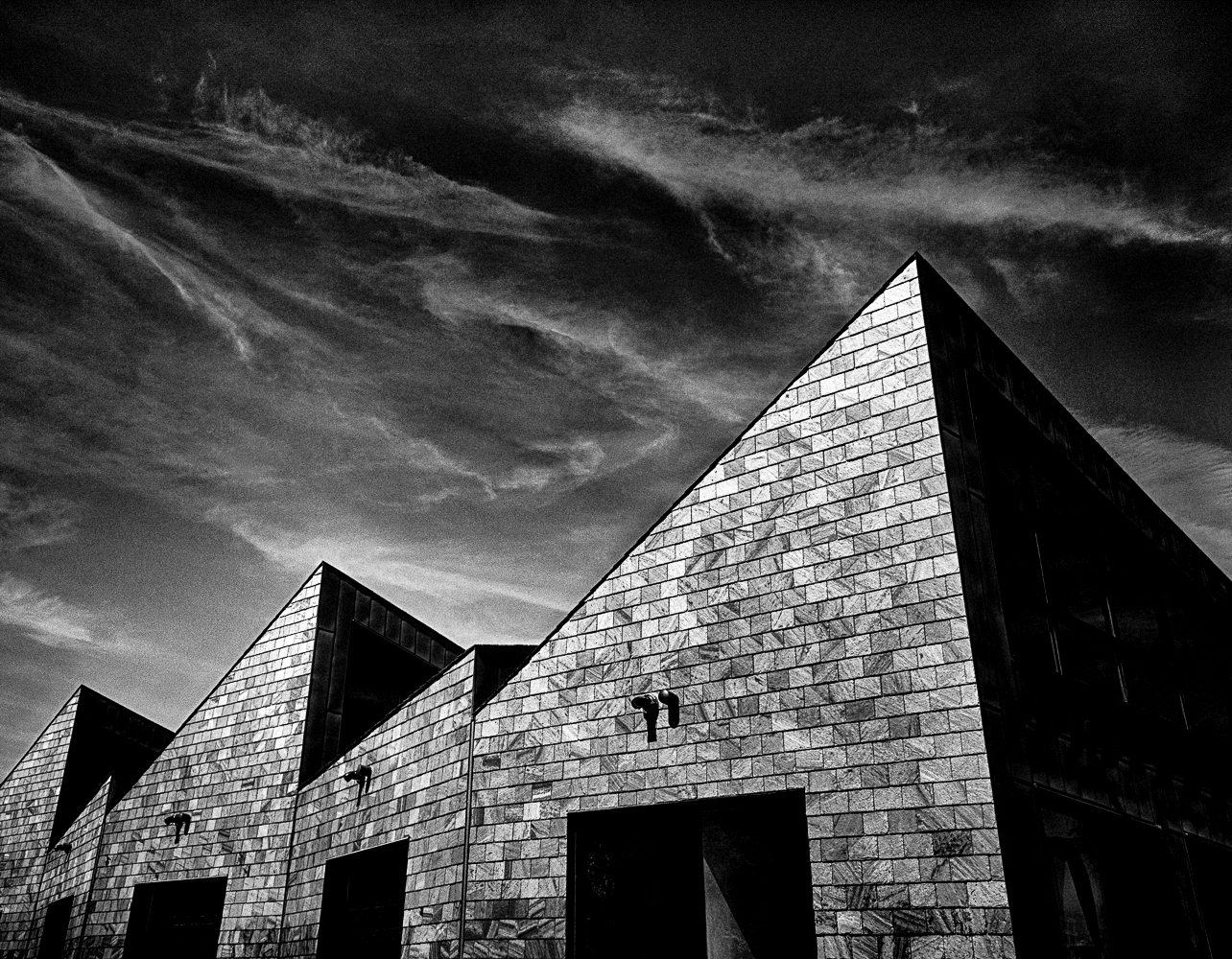 Hello Don - I love how you contrast the angular shapes of the building and roughness of the (wooden?) tiles with the fluffiness of the clouds. I am so interested in this picture that I took the liberty of doing my own slight edits. I cropped it on the left to only have the three main roofs. I also darkened the darks and shadows to reduce the emphasis on the windows and strengthen the geometric shapes to squares and triangles against a fluffy sky. Note sure that I was all that successful though. It was really an experiment for me ;)
