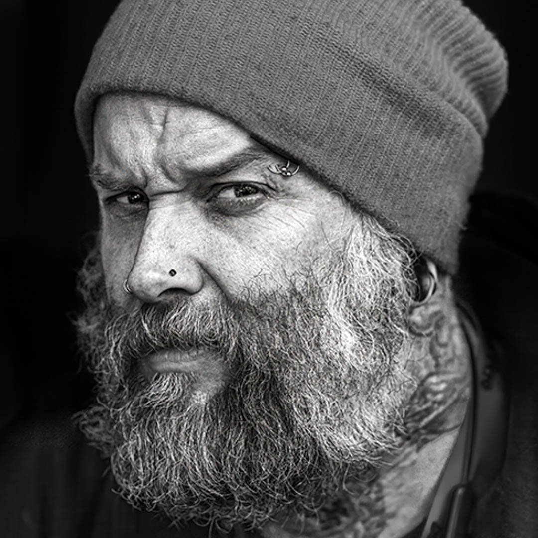 Allow me nevertheless to volunteer some ideas to consider: I personally would have put the face either in the center or leave more room to the left. Lacking the latter I slightly cropped. Further I darkened the white line in the back, which seems not to add value to the composition. |