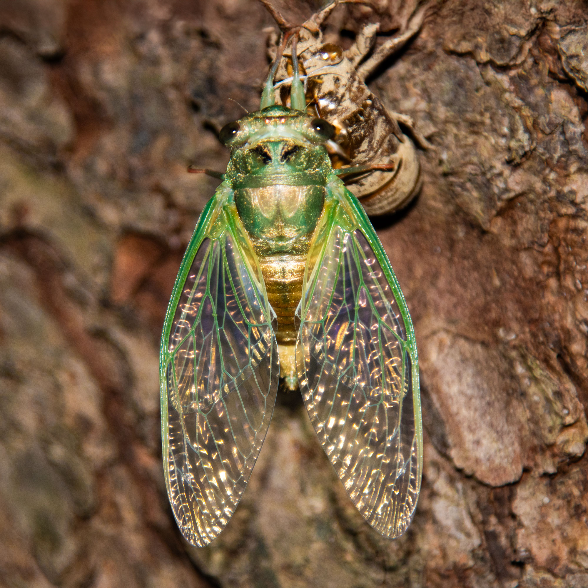 Thanks Joan. Unfortunately I was not able to take that many photos. It was a family party and I could not just go away for that long. I did manage to take one of the cicada emerging, which is attached. (Not as sharp as the other one.) But that one was taken an hour before the fully emerged cicada.