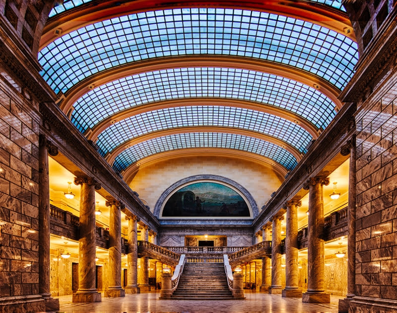 This is beautiful! I will use your tips for trying a shot of a vaulted, stained glass ceiling in a bank. I could never figure how to compose. I love your image. It is perfect as a horizontal. Colors are wonderful. I would keep the walls. If you are looking for perfect symmetry, I'd shave a tiny sliver from the right and adjust the perspective very slightly, pulling down. I tried above (not perfect). |