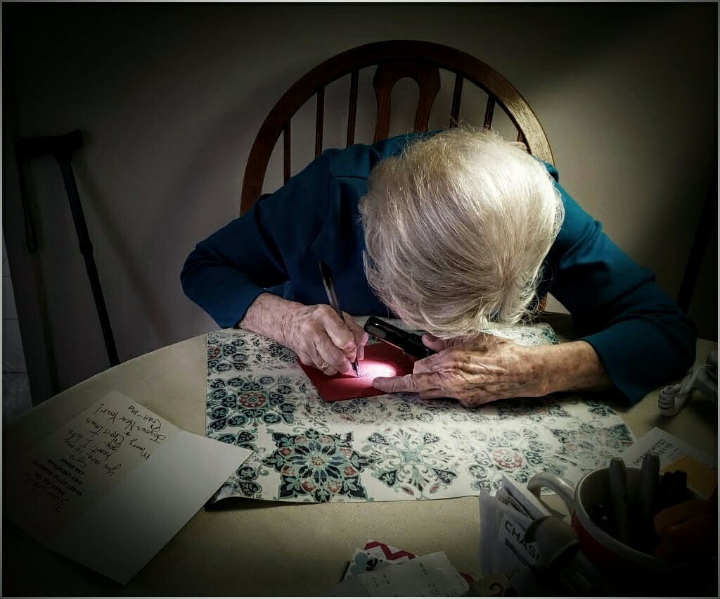 Ruth, congratulations on the new phone! It's an awesome one and seems overwhelming at first, but you'll catch on fast. This is a great image of your daughter-in-law, and your edits, especially a closer crop, makes it stronger. I have the same issues with things looking good on one device, and once I resize in another program it gets sketchy. The only thing to suggest is sharpen after resizing, and even then it doesn't always satisfy me. Stay safe!! |