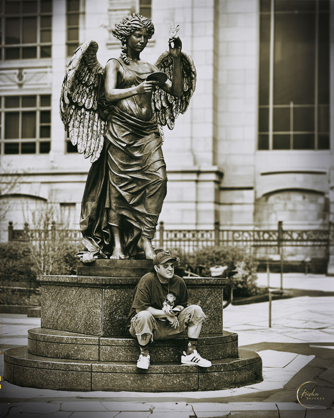 I love the clever inclusion of the easel and how you used the warp tool to fit the image to it-it's a great touch that adds an artistic flair. The gradient background works well, though you might experiment with slightly softer transitions between the colors to create an even smoother effect. Overall, this is a well-executed and imaginative piece that showcases both technical and creative skills. Great job! |