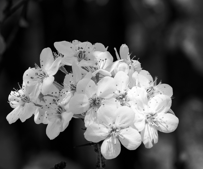 I like the image you captured. As Michael mentioned the image could be brighter to bring more contrast to the image to draw attention of the viewer to the flowers. I edited the image to give you an idea of how I would enhance the flower. I adjusted the crop, darkened the background and removed the flowers in the upper left. I wanted to simplify the image and highlight the flowers.