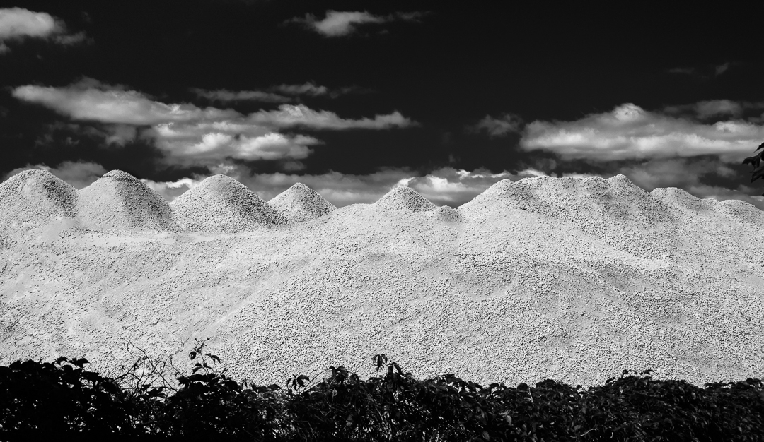Michael, I really like the creativity in taking a pile of gravel and making it into mountains. One area that might help the mounds of gravel is to add shadows to the mounds to give impression of both light direction and depth. I made an attempt at it with my image to give you an idea of what I was thinking by using Photoshop's Camera Raw masking and painting in shadows. |