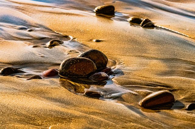 I agree with Audrey's suggestion. The original picture follows the 1/3 rule but there is too much empty space in the top 2/3. I like the landscape shot you put up for reference - peaceful beach with a subtle sense of casualness. I may do a crop to show the small sand formations... black and white or sepia... |