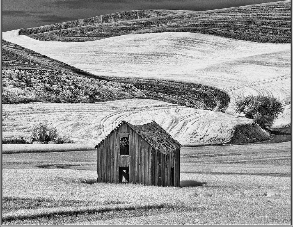 Interesting old barn, and the curve behind it is nice. I am a bit distracted by the sky in this image, however. Thus, my own preference would be to crop some of it out. I was wondering what does Topaz detail would do about adding more contrast and texture to the bright wheat, so I tried it. Detail didn't do what I'd hoped, but HDR dynamic pop got closer. Unfortunately, it also added quite a bit of noise. I'm not impressed with the noise, but think I like the increased texture/contrast in the fields. See what you think. |