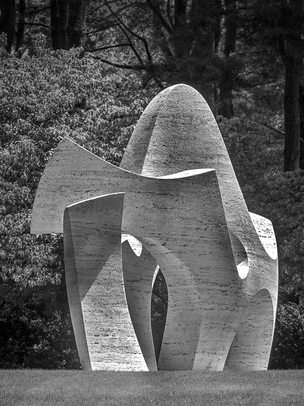 Welcome to the group, Gloria. This is an interesting sculpture that I agree works well in monochrome. I agree that getting rid of the dark shadows at the bottom of the image helps. Although I am not a frequent entrant in exhibitions, I've seen all kinds of cropping and image dimensions, so that doesn't seem to be an issue at all, particularly in digital, unless you intend to mat and frame an image, in which case, custom costs can be a deterrent. Although I think this works with the subject bright like you have it, I liked the shadows and highlights on the subject, so I tried playing with those a little bit, although not quite as dramatically as Diana did. I didn't do a very good job of it, but like the contrast between those areas. |