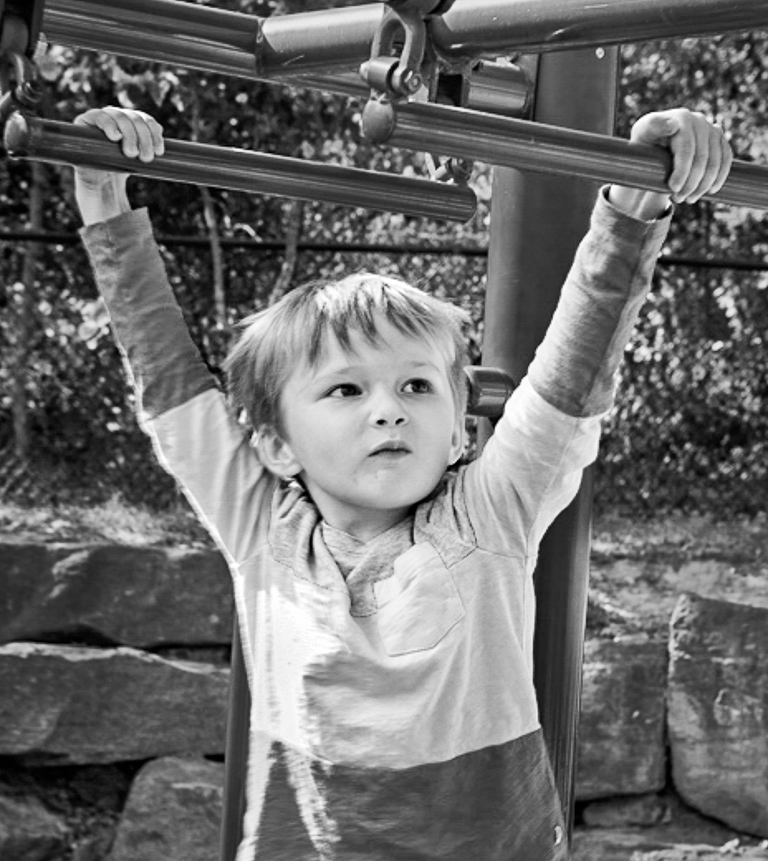 Lucas does look very intent on what he is doing, so your efforts to draw attention to his expression worked effectively. You also captured good sharpness, particularly for his being in motion and the low ISO and shutter speed. I agree with Tom's suggestion to crop some of the top of the image, as that draws even more attention to Lucas. I've also tried selecting him and adjusting contrast slightly, then doing an inverse selection to darken the background, so as to bring even more attention to his eyes and face. Of course, some people don't like square format images, but I'll attach the one I did so you can see what you think. |
