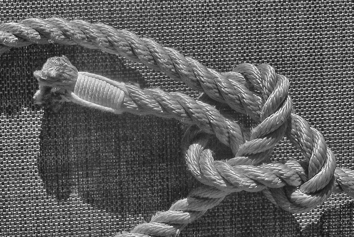 I really like the strong shadow the rope creates in the monochrome image, but find the background works better for me in the color version. I tried blurring the background a little bit, but decided that didn't improve upon what you've presented. I do like Victor's image with the increased contrast making the rope a little brighter. It would create a completely separate image, of course, but I'm thinking a tight crop on the knot itself also might be interesting. |