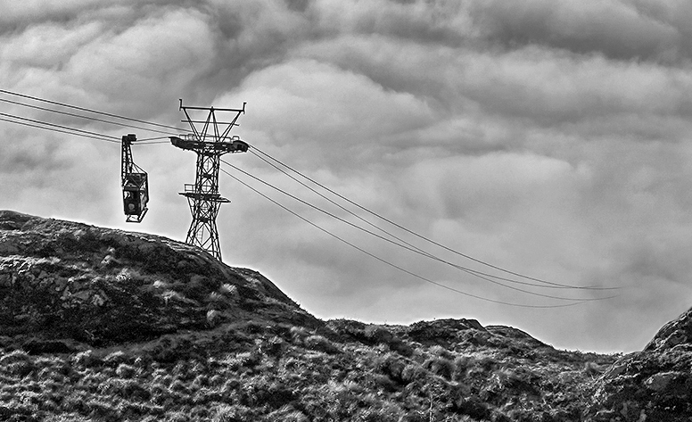 While I, too, prefer your image last month looking down on all the clouds, this one with the cable vanishing into them also is an interesting idea that I think can work well. My personal preference on this image is to crop some from the left and top sides, as that brings my attention more to the cable rather than the sky. (Some clouds are fine, but lots of clouds, for me, makes them the subject of the image.) Does the gondola swing a lot? It appears that could be a bit of a wild ride! |