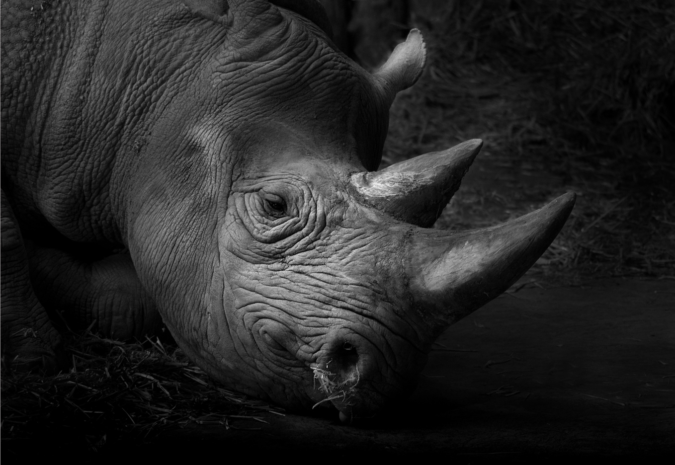 I'm already likely to run afoul of the preference for more space, but I find the crop of the second ear a bit awkward, and think I prefer this image with a tighter crop. To me, it makes the subject more intimate. I agree with Lynn that it didn't seem to be floating to me, but the rhino does appear ill or distressed in the monochrome image. |