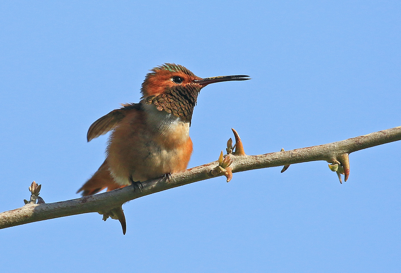 Allen's hummingbirds are not quite as iridescent as some of the other hummingbird varieties. But you can see which you like better. Here's the color image. |