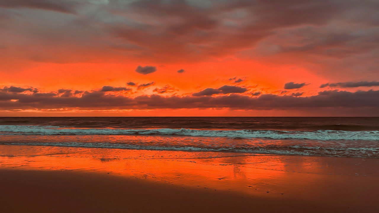 I played with the image a bit, using brightness and contrast, converting the lower left beach into "negative space". I normally push sunsets in that direction, but that's just a matter of taste. |