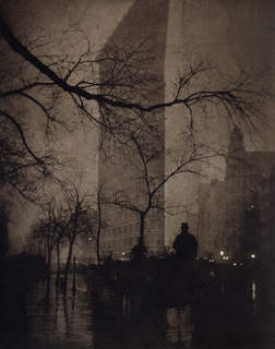 Here is Edward Steichen's famous shot of the Flatiron building, coming from the early 20th century pictoralism period. |