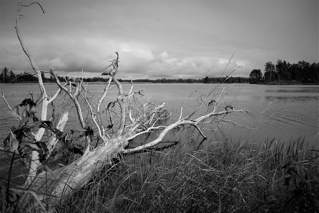 Hi, I am visiting from Monochrome Group 32. This is a very fine composition, with a great placement of the dead tree limbs bordering the frame, and a nice juxtaposition of near and far.