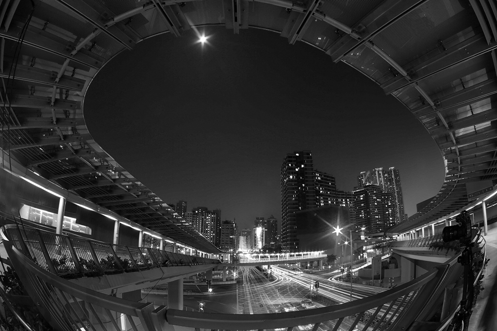 Those foot bridges (we called them "fly-aways") were there in Hong Kong when we visited there often in 1988-89. One could get all over downtown without even descending to the level of the cars.