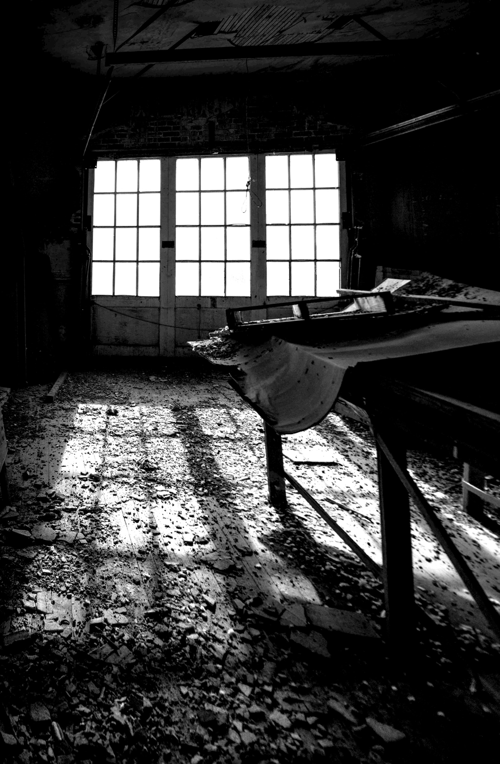 Hi Lynne, I am visiting from Monochrome Group 32. This is a dramatic shot, almost monochrome already, so here is one version in full monochrome. But I also changed the lights and darks using "levels" in PS Element. Or you could use "curves" in full PS. When doing that, there are a lot of choices. I happen to like a lot of black, so my variation on your image is very personal. I also ran the view out the windows to pure white because I was not interested in that view. What do you think? |