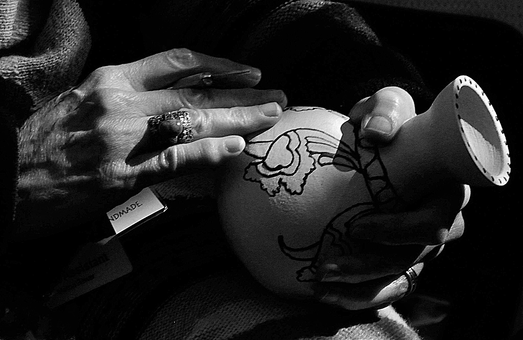 Hi Bill, I am visiting from Monochrome Group 32. You have a fine composition and great lighting on this shot. I also like the idea of making a portrait of a person showing only their hands and their craft. Because the lighting is so great on this shot, I tried it in monochrome, adjusting overall brightness and contrast, and sharpened it a bit to bring out the texture in the artisan's hands and the pot surface. Here it is for discussion. |