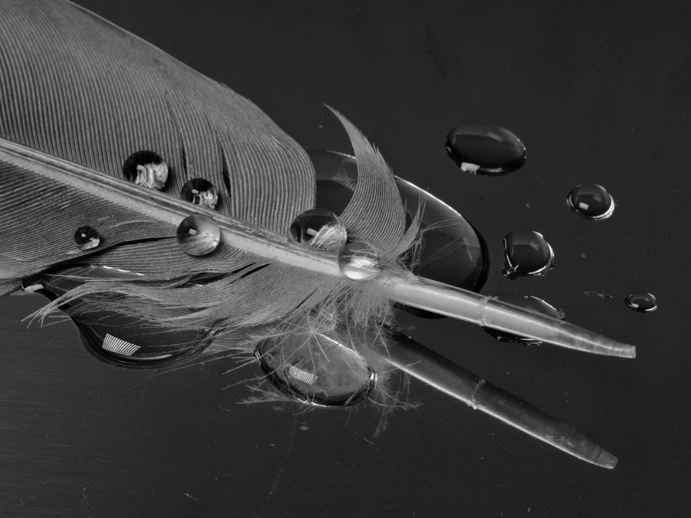 Applause for experimenting with new things, and for working so hard at it. I think you have some pretty good success with this. I really like the unique idea of combining a feather with water droplets--most people would have combined leaves or grass with water droplets.