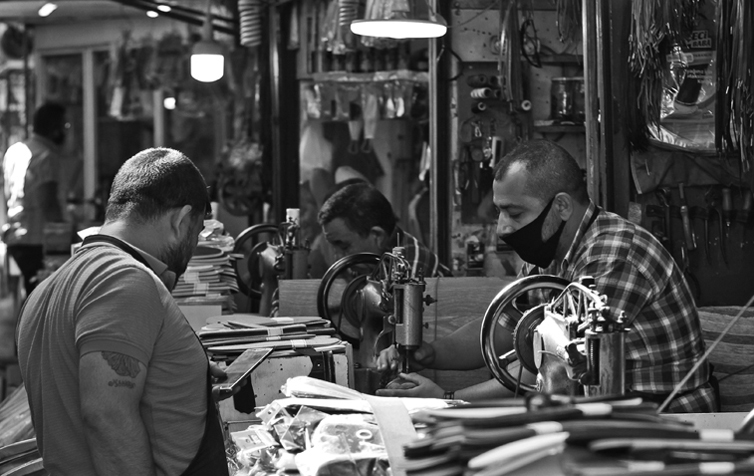 I would suggest a closer view of the hands of the man on the right and less of the blurred foreground. What do you think of this crop? |